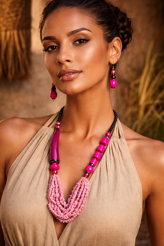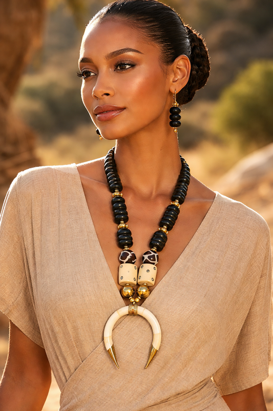 This Toggle Tribal Pendant Necklace Set is a culturally inspired ensemble that combines elegance with...