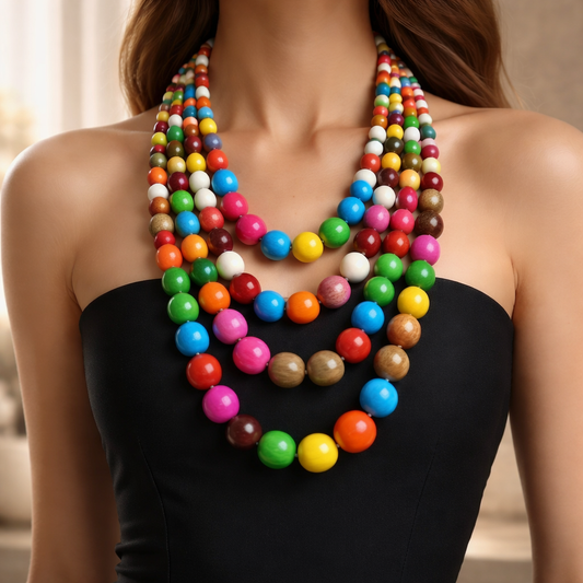 This exquisite multicolor necklace features wooden beads that are crafted from environmentally friendly materials sourced...