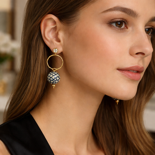 This stunning earring, crafted in the shape of a Dreamcatcher, is composed of Glass Massi...