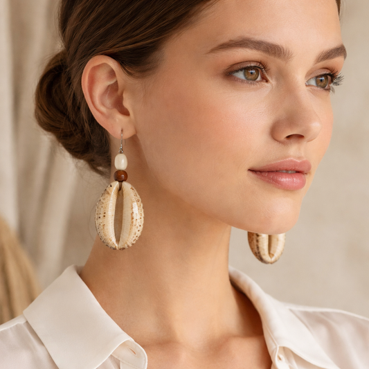 Cowrie Shell Earrings. Includes recycled materials. Unique, matched natural shells with nickel-free hooks. Small shell...